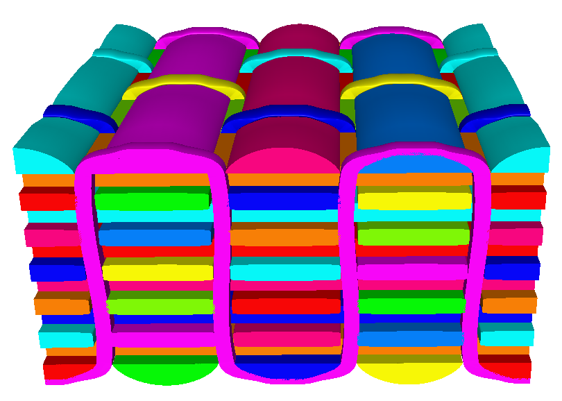 X-ray microtomography is the most promising method to experimentally access the geometry of an elementary mesh 25 26 27. This technique consists in scanning a representative sample of a reinforcement in order to obtain a 3D cartography and then to process the images obtained by cutting the constituent elements (the strands), separating them from each other and meshing them. Microtomography has the great advantage of being able to lead to interpenetration-free modeling if the appropriate digital treatments are performed 28 29.