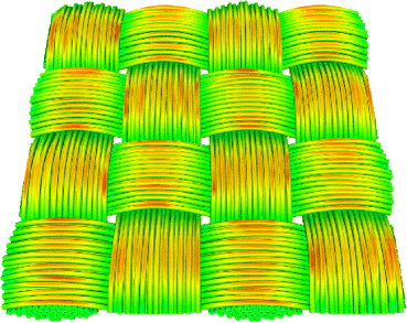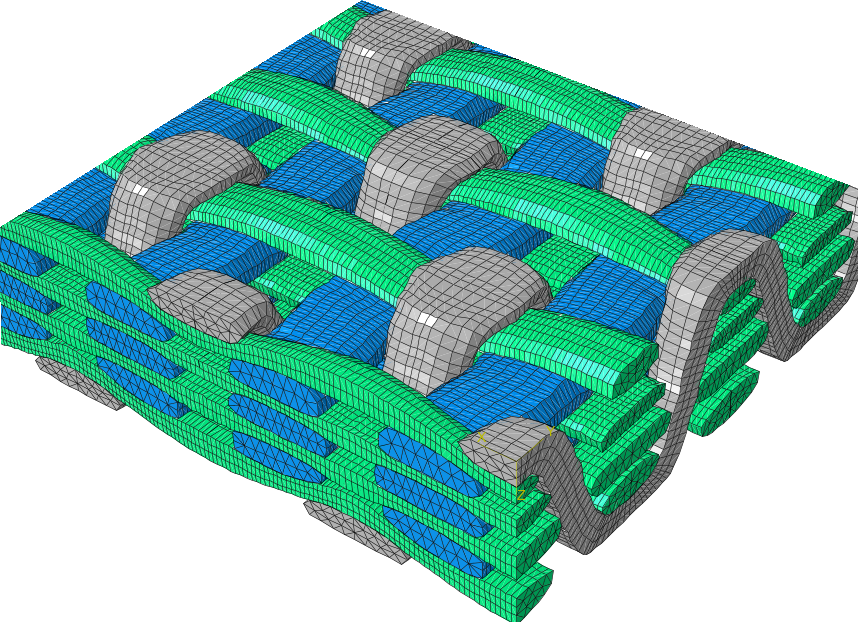 Face à ces limitations, le recours aux éléments finis semble une bonne alternative. Leur utilisation à cette échelle nécessite alors deux prérequis : la géométrie et les conditions limites du renfort. La géométrie doit pouvoir être obtenue théoriquement à partir des caractéristiques de la mèche et de l'armure, ou expérimentalement.